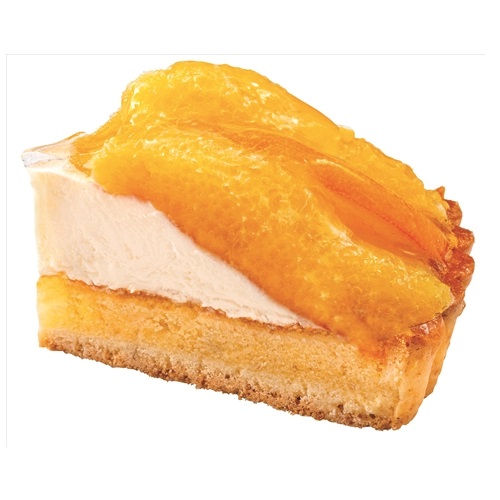 アーモンドパウダーを加え香ばしく焼き上げたサクサク食感のタルト生地の上に、カスタードクリーム、色とりどりの5種のフルーツを盛り付けた煌びやかなフルーツタルト。