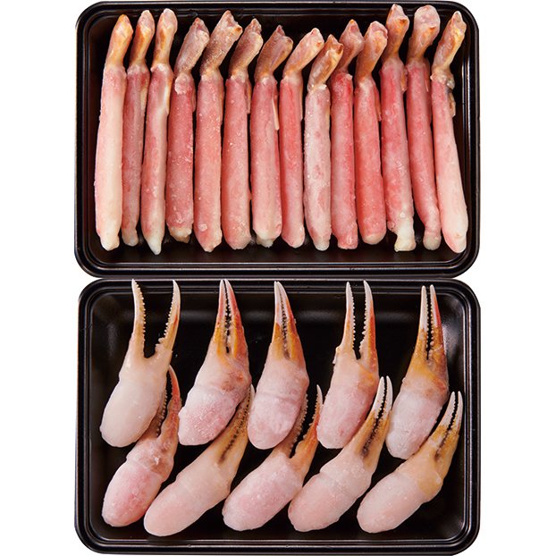 生ずわいがに棒(脚)300g(ロシアまたはカナダまたはアメリカ産)、生ずわいがに爪300g(ロシアまたはカナダまたはアメリカ産) 脚・爪を食べやすいように剥いてあります。しゃぶしゃぶに最適です。