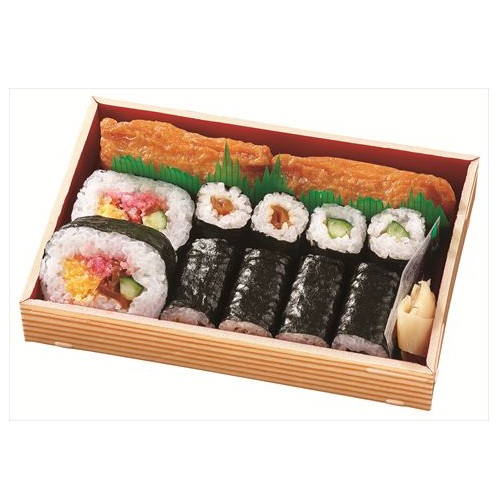 海苔太巻き、かんぴょう巻き、かっぱ巻き、いなり寿司、甘酢生姜