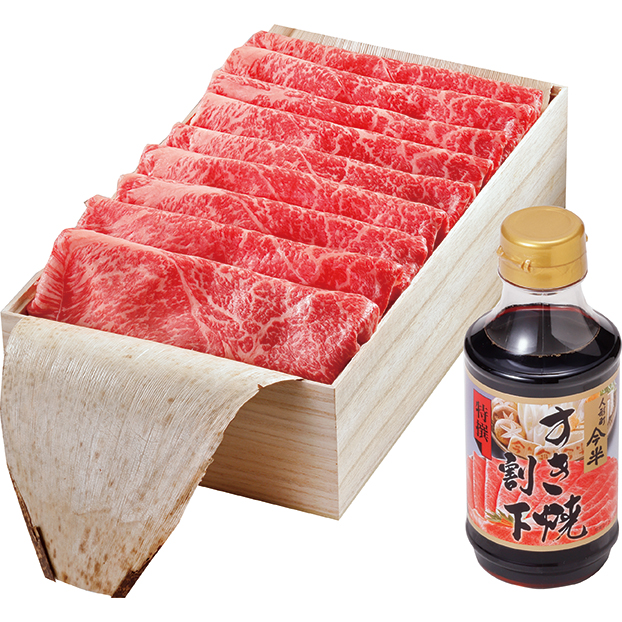 肩・もも計500g、特撰すき焼割下360g 「人形町今半」特製の割下がついた、ご自宅で老舗の味をお楽しみいただけるセットです。