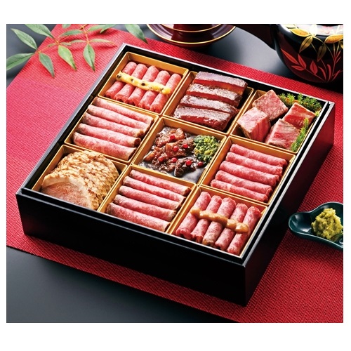 黒毛和牛ローストビーフ(西京味噌)・豚角煮・黒毛和牛サーロインローストビーフ角切りカット・黒毛和牛ローストビーフ(塩胡椒)・黒毛和牛ビーフシチュー・黒毛和牛ローストビーフ(赤ワイン漬け)・合鴨ロース醤油仕立て・黒毛和牛ローストビーフ(醤油)・黒毛和牛ローストビーフ(赤味噌)