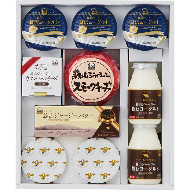 贅沢ヨーグルト90g×3、ジャージーヨーグルト100ml×2、カマンベールチーズミニ60g、スモークチーズ200g、バター(加塩)100g、飲むヨーグルト150ml×2 蒜山(ひるぜん)高原の豊かな自然の中で飼育されているジャージー牛の乳は、濃厚でコクがあるのが特長です。