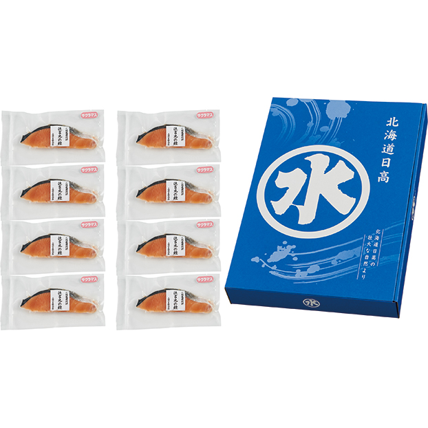 サクラマス切身70g×8 北海道日高沖で船上にて活〆されたサクラマスを甘塩に仕立ました。脂のりがよく柔らかで繊細な身が特長です。