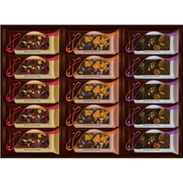 ベリー&ベリー×5、オレンジ&アップル×5、レーズン&イチジク×5 カカオ感あふれる、とろける口溶けの濃厚なチョコレートケーキ。厳選したフルーツと重なる贅沢な味わい。