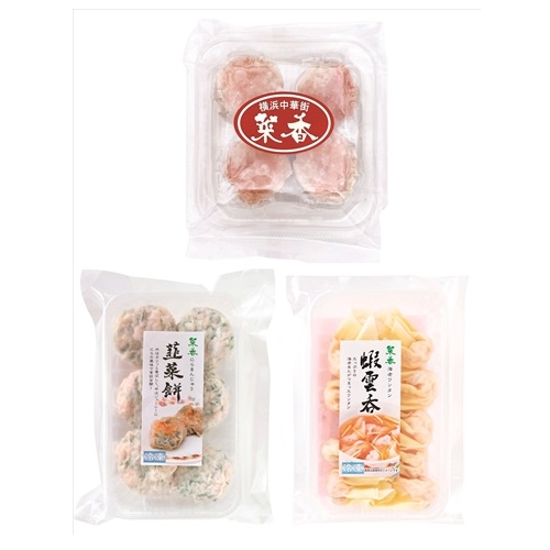 蝦雲呑9個入×1パック、韮菜餅6個入×1パック、香港焼売4個入×1パック