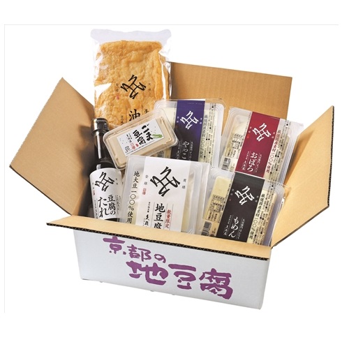 地豆腐×1、はんなりもめんミニ×1、すっぴんやっこミニ×1、まったりおぼろミニ×1、ごま豆腐×1、油揚げ大×1、豆腐のたれ×1