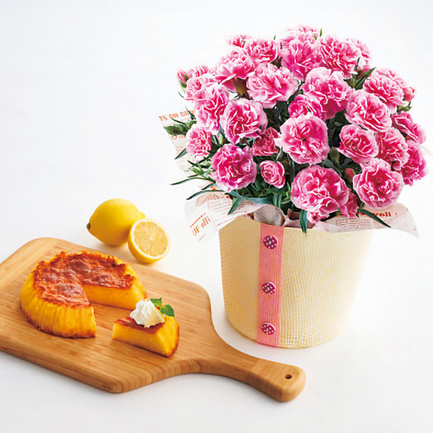 瀬戸内レモンカステラとカーネーション「ティーパーティ(5号鉢)」