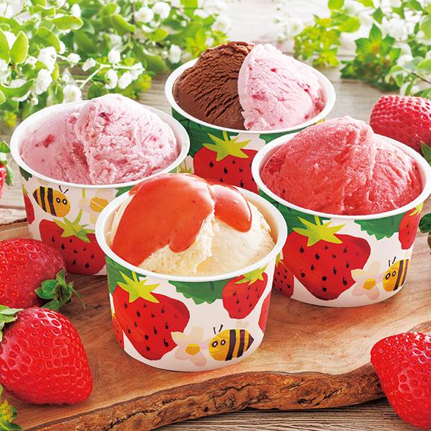 苺と相性のよい素材を選び、全く異なる4つの味わいに仕上げました。